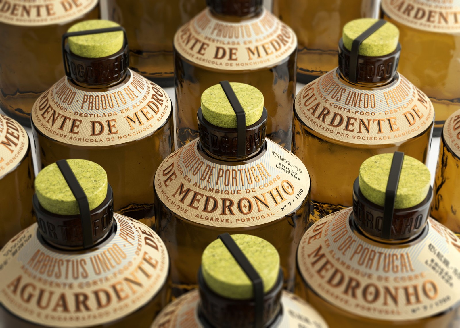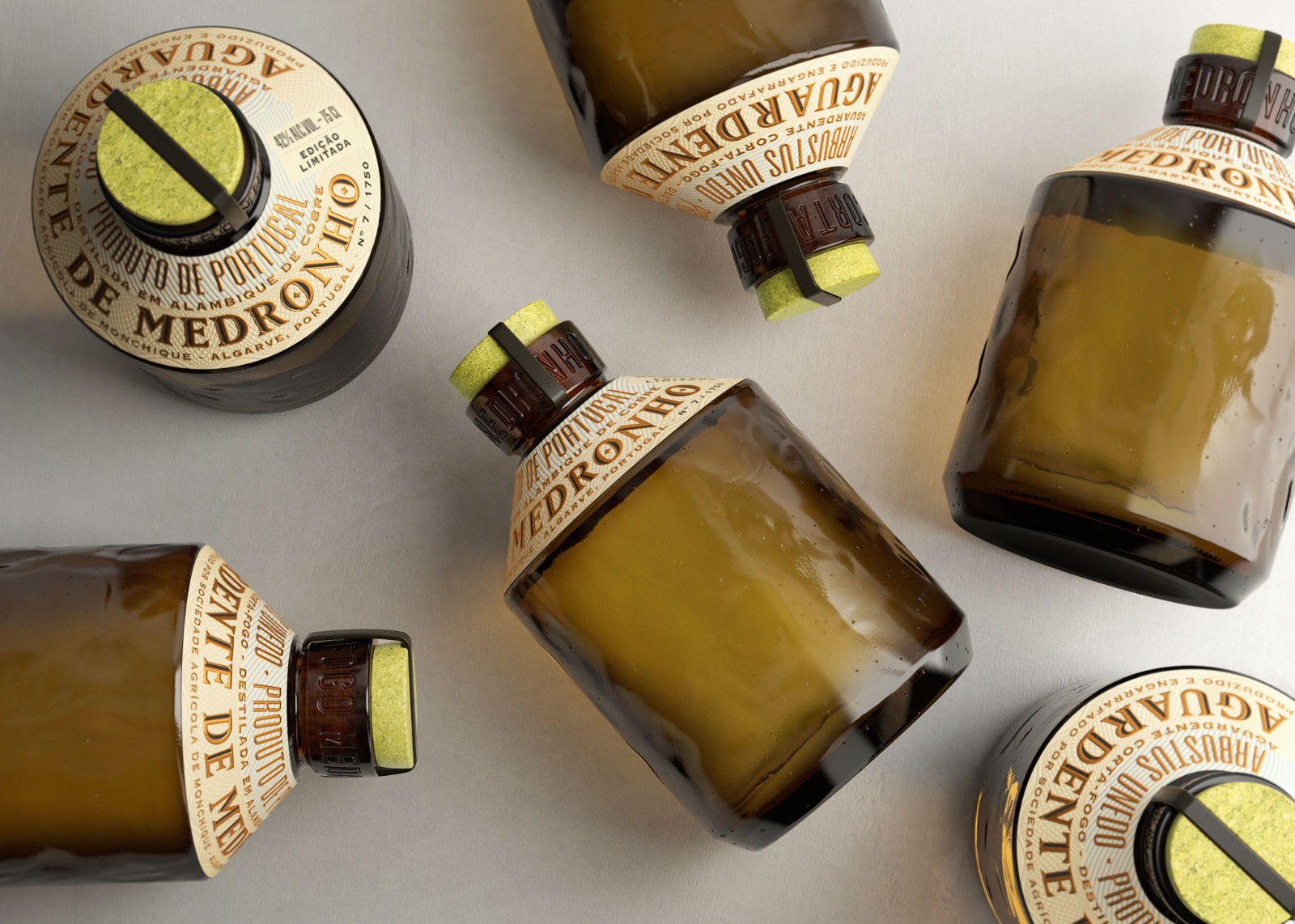 我希望瓶子的有机质地因其裸露而脱颖而出,传达与自然和 Medronho 工艺生产的联系。在创作过程中,很明显,标签需要一个不寻常的指定空间,以避免与瓶子竞争。令人惊讶地发现,当我们从明显的聚光灯下移除标签时,它变成了一个更强大的设计元素。